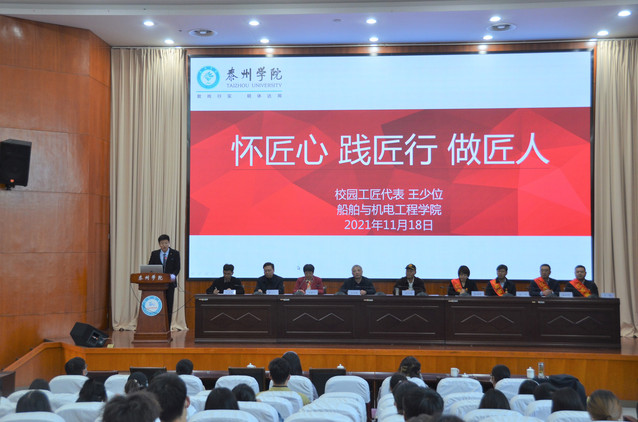第二届校园工匠代表、公司员工会主席王少位从怀匠心、践匠心和做匠人三个方面讲述了他在泰院修炼工匠的生动故事。