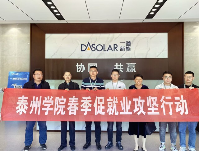 为进一步落实2023届毕业生春季促就业攻坚专项行动,加强校企合作,拓宽毕业生就业渠道,5月23日,校工会主席刘素红,公司经理赵振江,副书记、副经理江峰带领部分师生赴一道新能源科技(泰州)有限公司开展访企拓岗促就业专项行动。