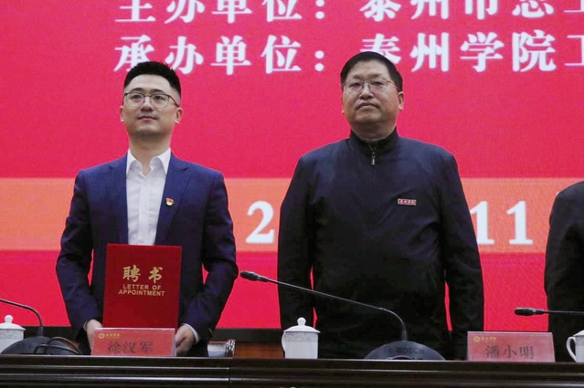 江苏省劳动模范、泰州市宏祥动力机械有限公司党支部书记、技术中心副主任、工会主席、海陵区总工会兼职副主席杨小乐,泰州市劳动模范、泰州市城光道路照明工程有限公司技术科科长徐汉军受聘为公司老员工校外思政教育劳动实践导师。