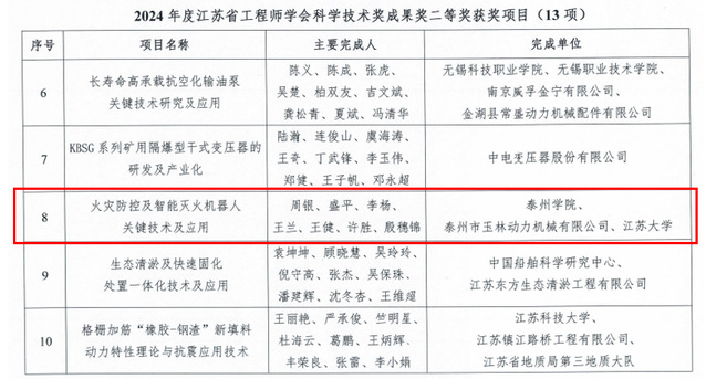 近日,公司科研成果捷报频传,机电控制与自动化团队与江苏远望仪器集团有限公司联合申报的《船舶智能能效管理系统关键技术及产业化应用》荣获中国商业联合会科技进步奖二等奖;与江南大学、青岛大学、江苏运博电力科技有限公司及泰州市润扬电气有限公司联合申报的《复杂动态系统建模辨识关键技术及应用研究》荣获中国商业联合会科技进步奖三等奖;材料科学与成型团队与泰州市玉林动力机械有限公司及江苏大学联合申报的《火灾防控及智能灭火机器人关键技术及应用》荣获江苏省工程师学会科学技术奖成果奖二等奖。