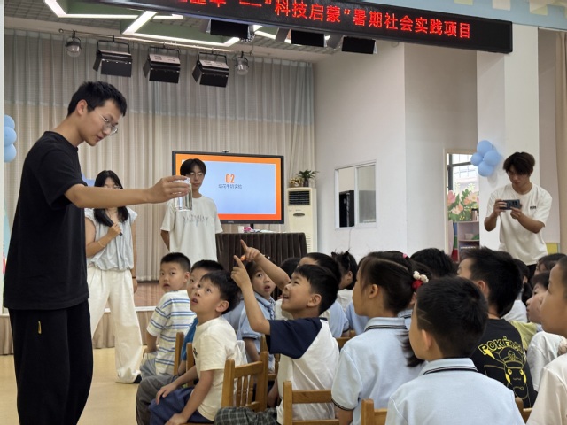 本次暑期社会实践活动,以精心设计的互动游戏与科学实验为载体,成功点燃了幼儿对科技世界的好奇心与探索欲。这不仅是机电学子服务社会的生动实践,更是为培养未来具备科学素养和创新精神的时代新人播撒希望、注入动能的有益探索。(供稿:董自然)