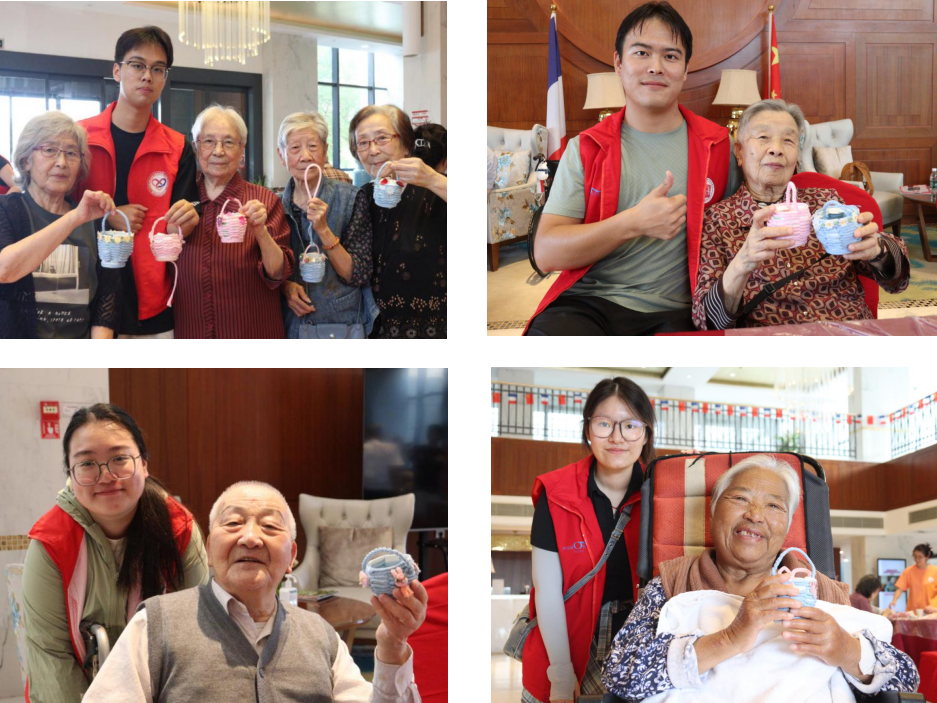 活动伊始,团队便提前布置好场地,用暖黄灯光与干花营造温馨氛围;待长者围坐,队长细致讲解并演示纸杯花篮制作技巧,长者们专注投入、不时交流,队员则俯身为他们耐心协助、暖心鼓励,制作间隙还与长者闲话家常,分享生活点滴。活动尾声,每位长者都完成了专属花篮,团队还特意为行动不便的长者送上亲手制作的作品,将温暖与关怀稳稳传递。